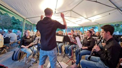 Weiter ging es direkt im Anschluss mit zwei Stunden bester Blasmusik, gespielt vom Bezirksjugendorchester Hardt unter der Leitung von Daniel Heck. Dabei bestand die Herausforderung, dass die Bezirksjugend eigentlich nur bei Konzerten spielt und somit keine traditionelle Blasmusik im Repertoire hat. Dennoch haben sie den Auftritt super gemeistert.